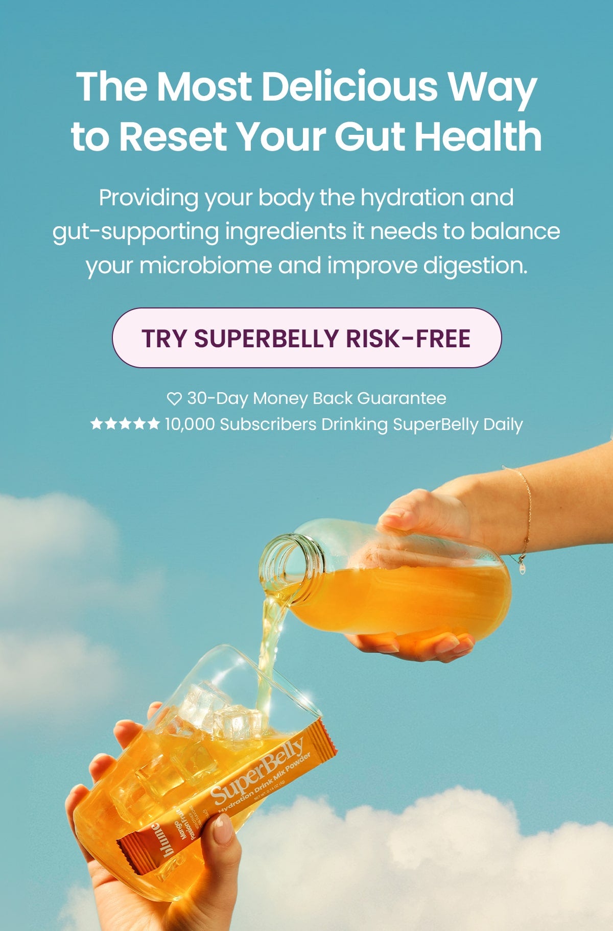 Blumies with IBS should also consult a trusted healthcare professional, since SuperBelly contains inulin, which is a fructan and not part of the FODMAP diet. That said, research shows that inulin is beneficial for those with IBS-C or with constipation, so it’s always best to double check to see if adding SuperBelly to your routine makes sense for you!