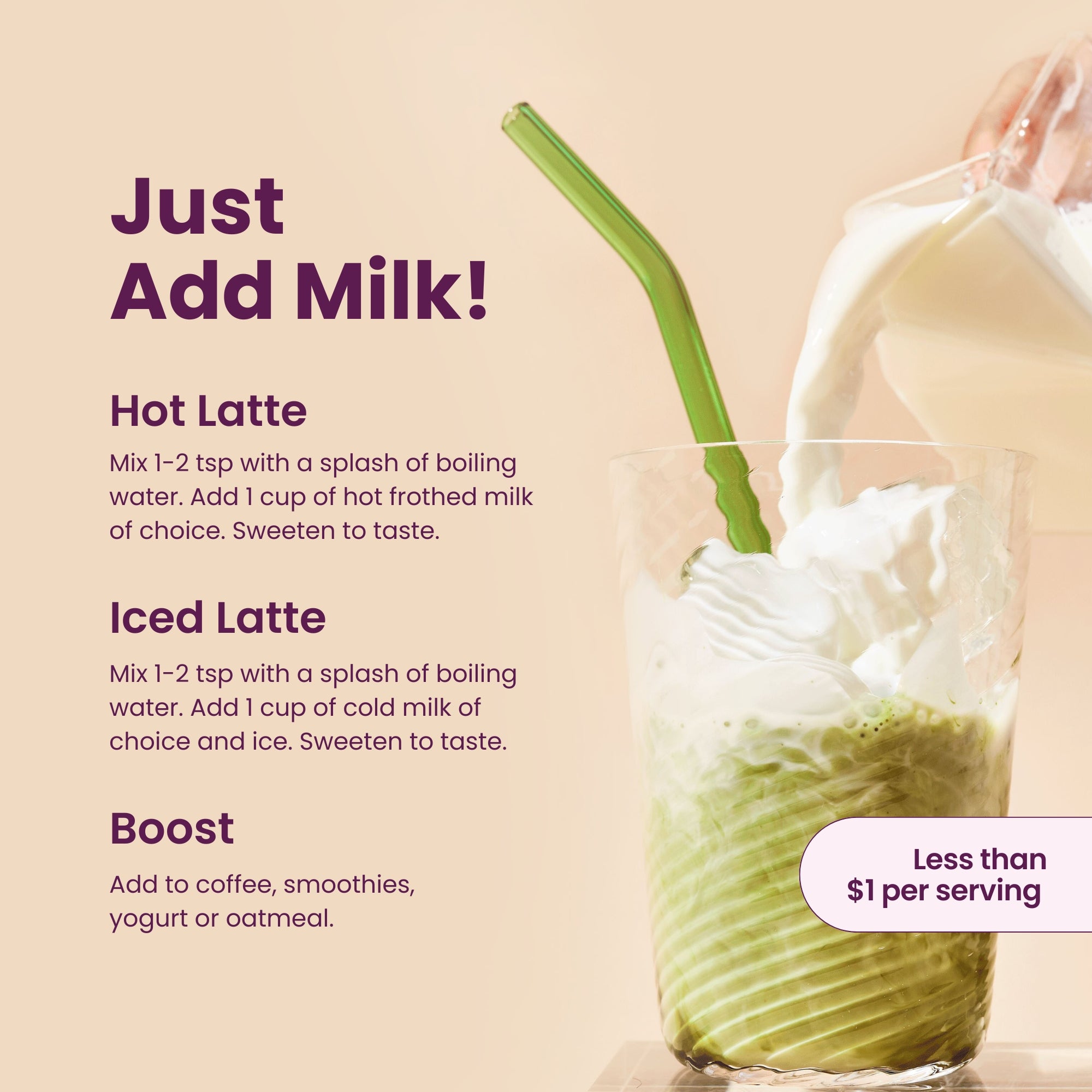 Ajoutez 250 ml de lait chaud moussé de votre choix. Mélangez bien et dégustez !