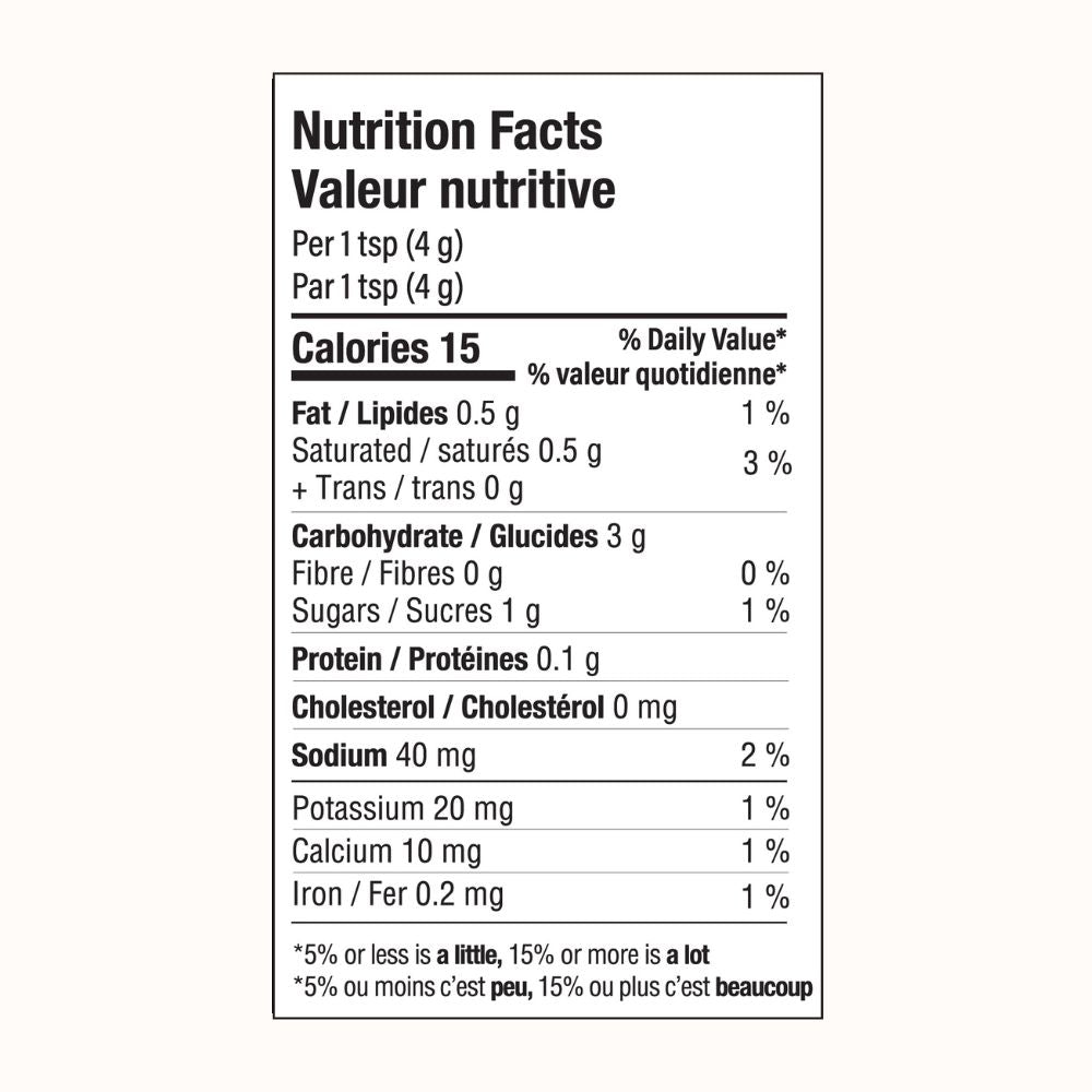 Ingredients: Coconut milk powder* (coconut milk*, tapioca maltodextrin*), Caramel flavour*, Coconut sugar*, Maca powder*, Mesquite powder*, Pink Himalayan salt, Dandelion root powder*, Carob powder*.