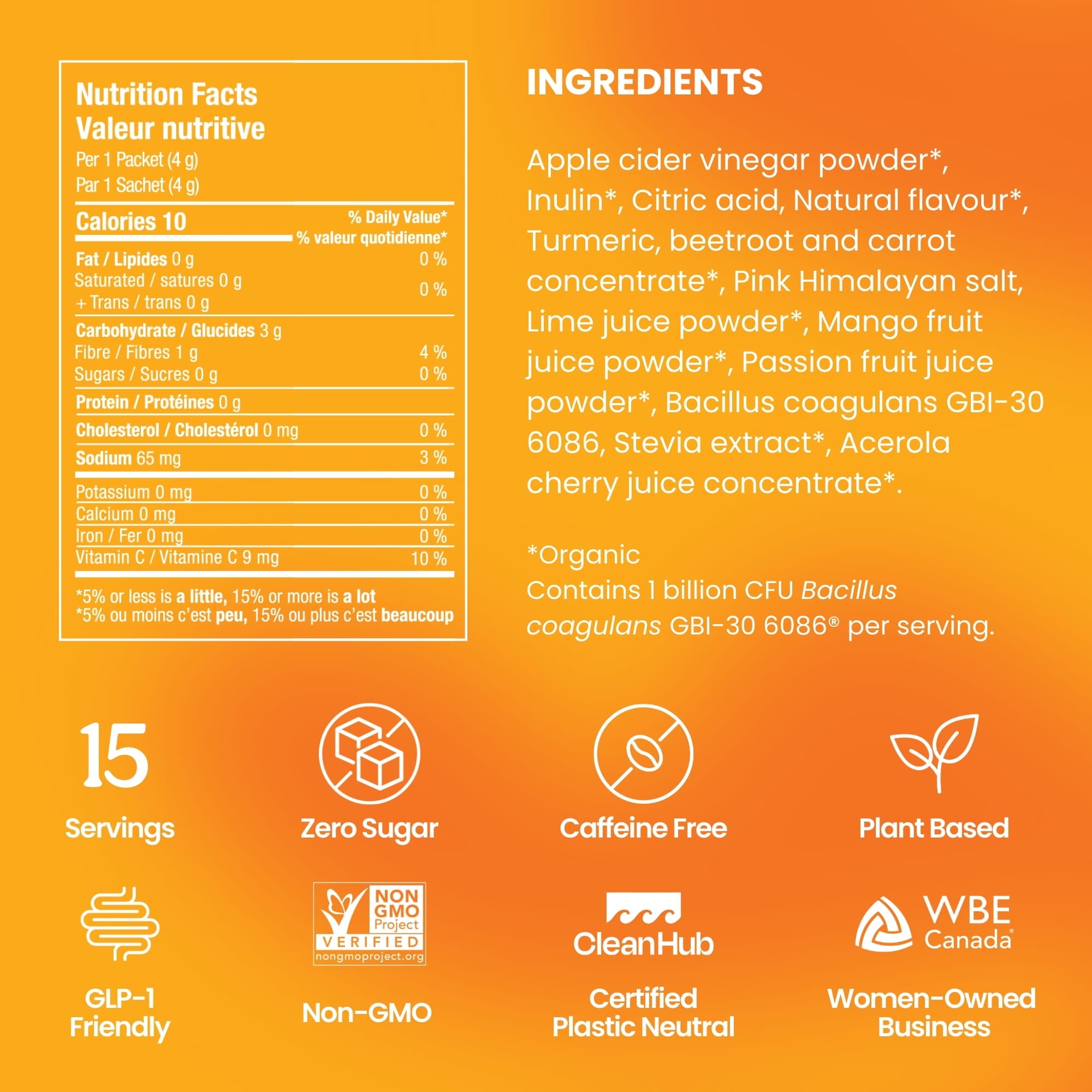 - GUT SUPPORT: Clinically-Studied Ingredients Including BC30™ Probiotic, Fibre and Fermented Apple Cider Vinegar